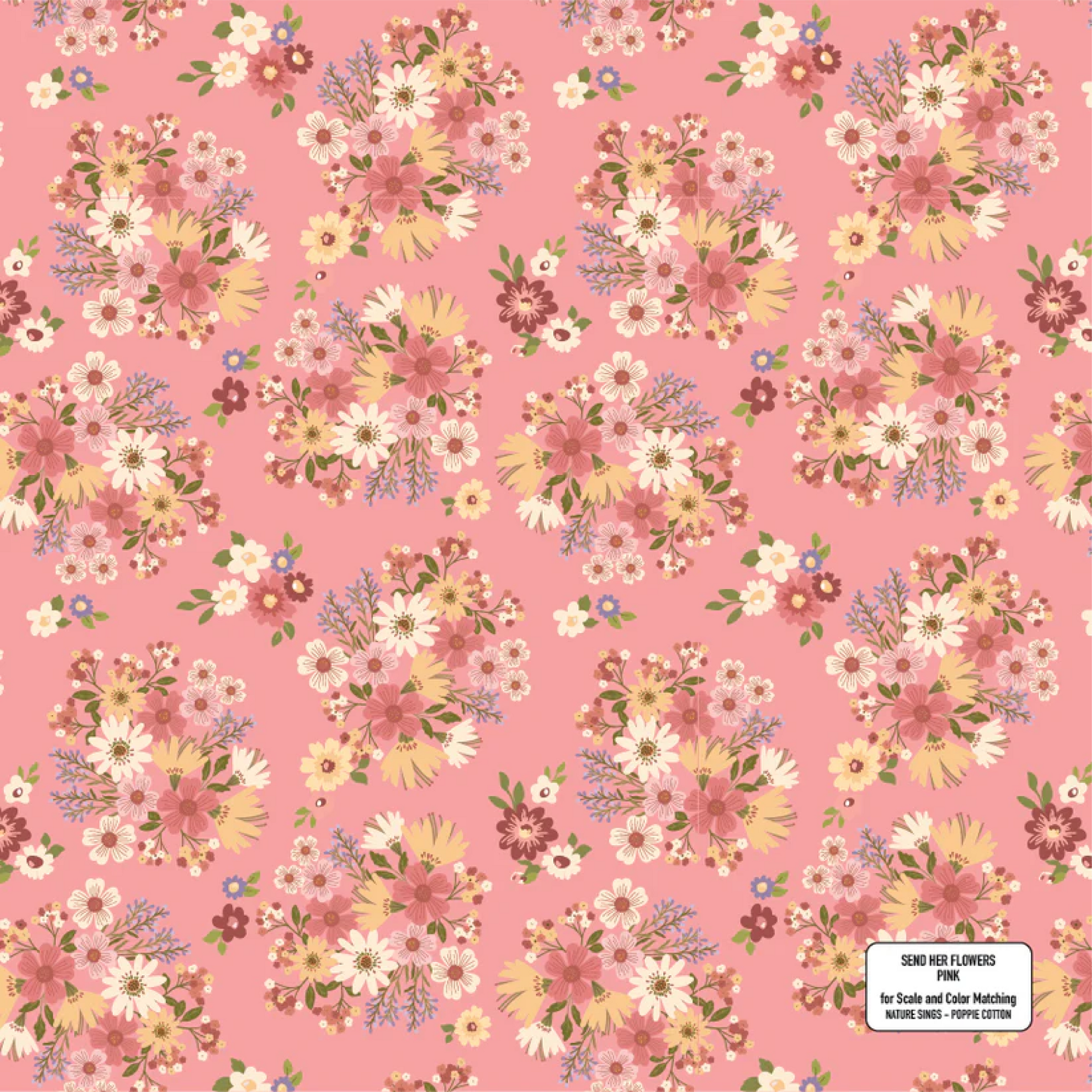 Nature Sings by Lori Woods Send Her Flowers Pink Poppie Cotton Fabric