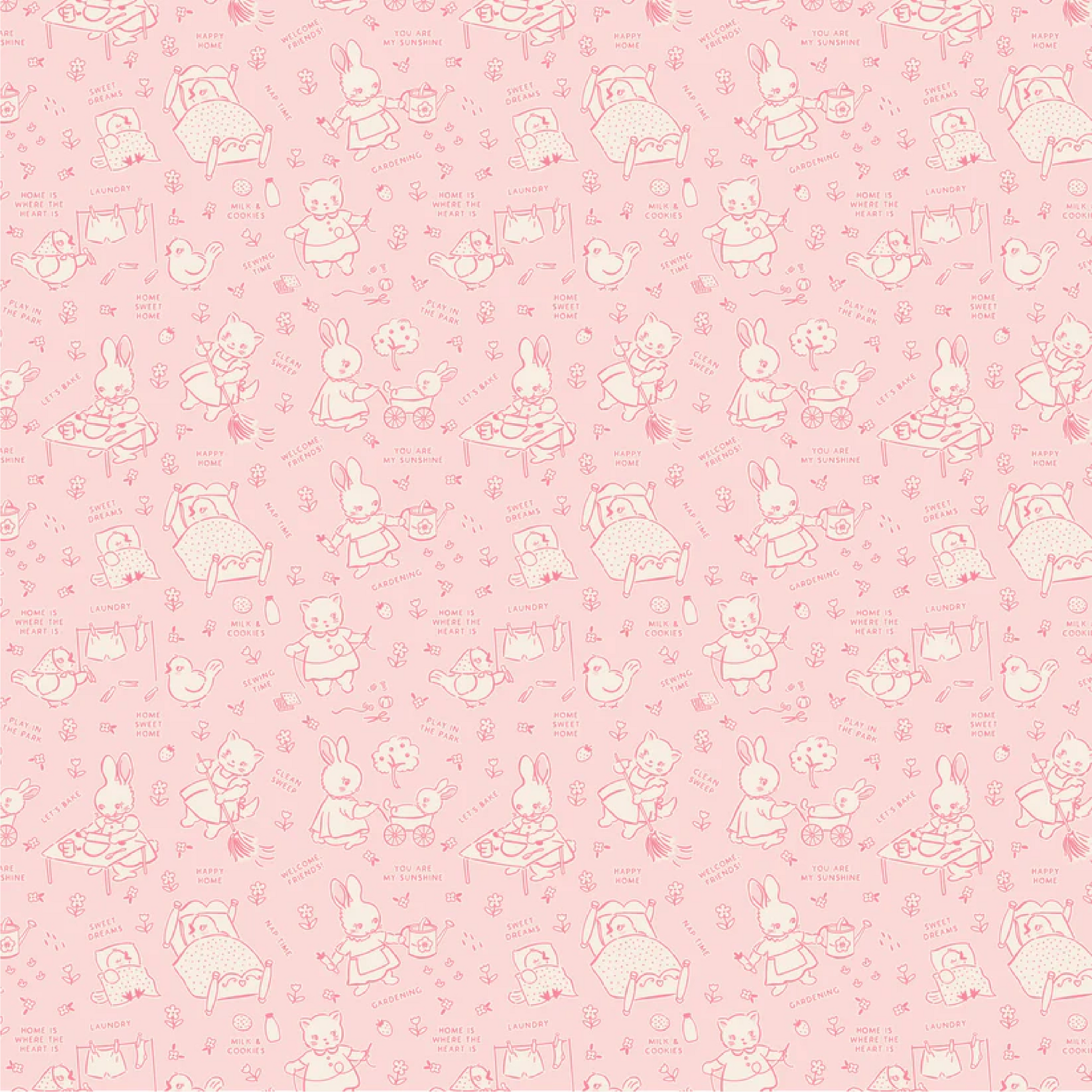 Poppie Cotton Home Sweet Home Chore Time Pink Quilting Fabric